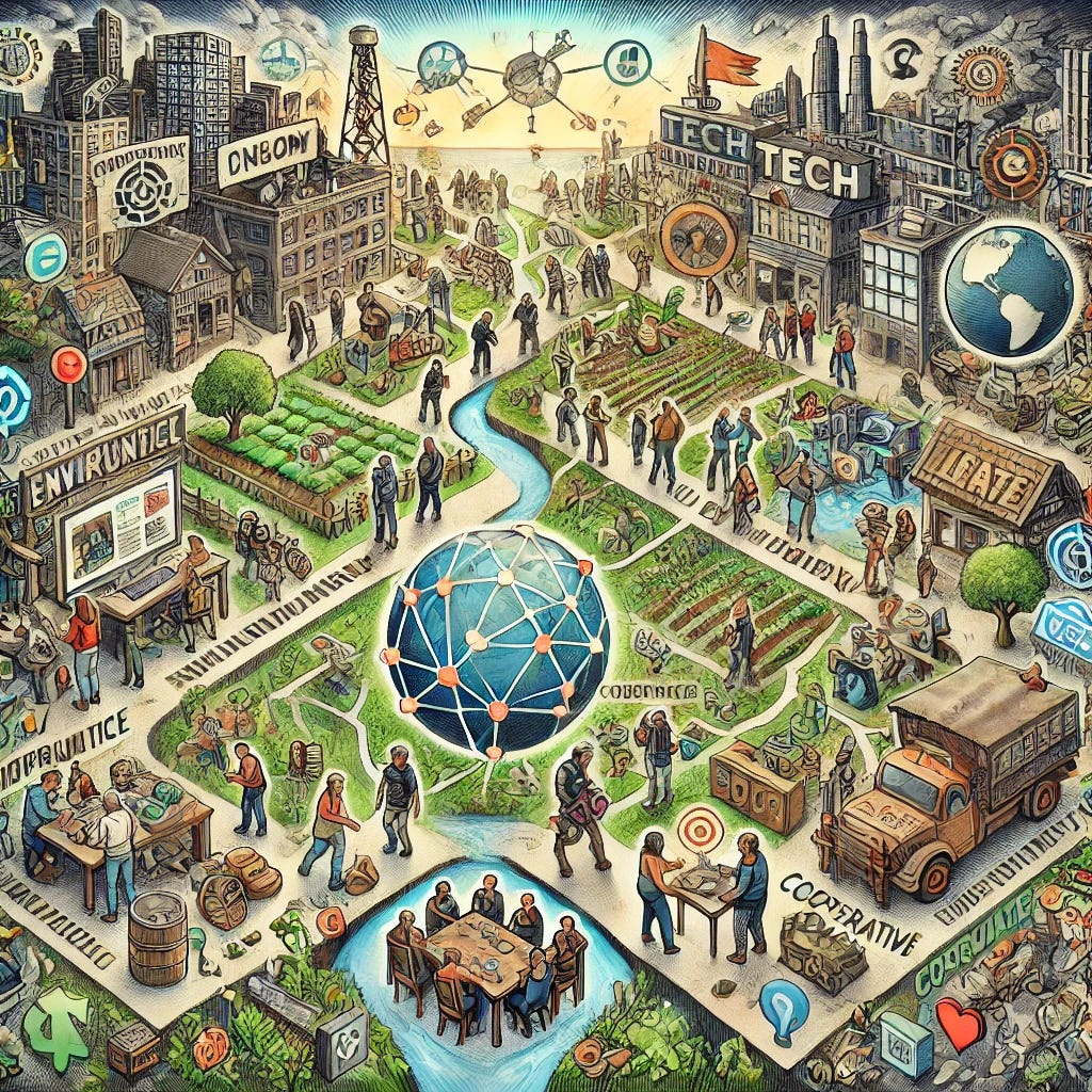 For ATS to realize its decentralized vision, it must engage with a wide variety of constituent groups that share an interest in autonomy, self-governance, or resistance to centralized power. ATS recognizes that potential allies exist across a broad ideological spectrum, from left-wing anti-capitalists to right-wing decentralists, who are united by their shared opposition to the existing order. By identifying issues that resonate with each group, ATS can form coalitions around common goals, enabling the establishment of bolo'-like communities in diverse settings. Below are 100 groups that ATS could engage with, categorized based on their alignment with autonomy, environmentalism, social justice, or alternative economic structures.